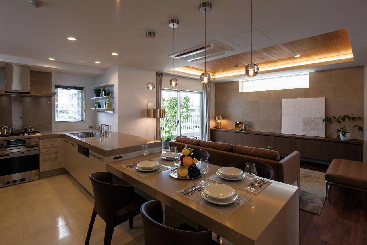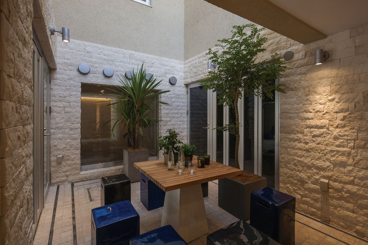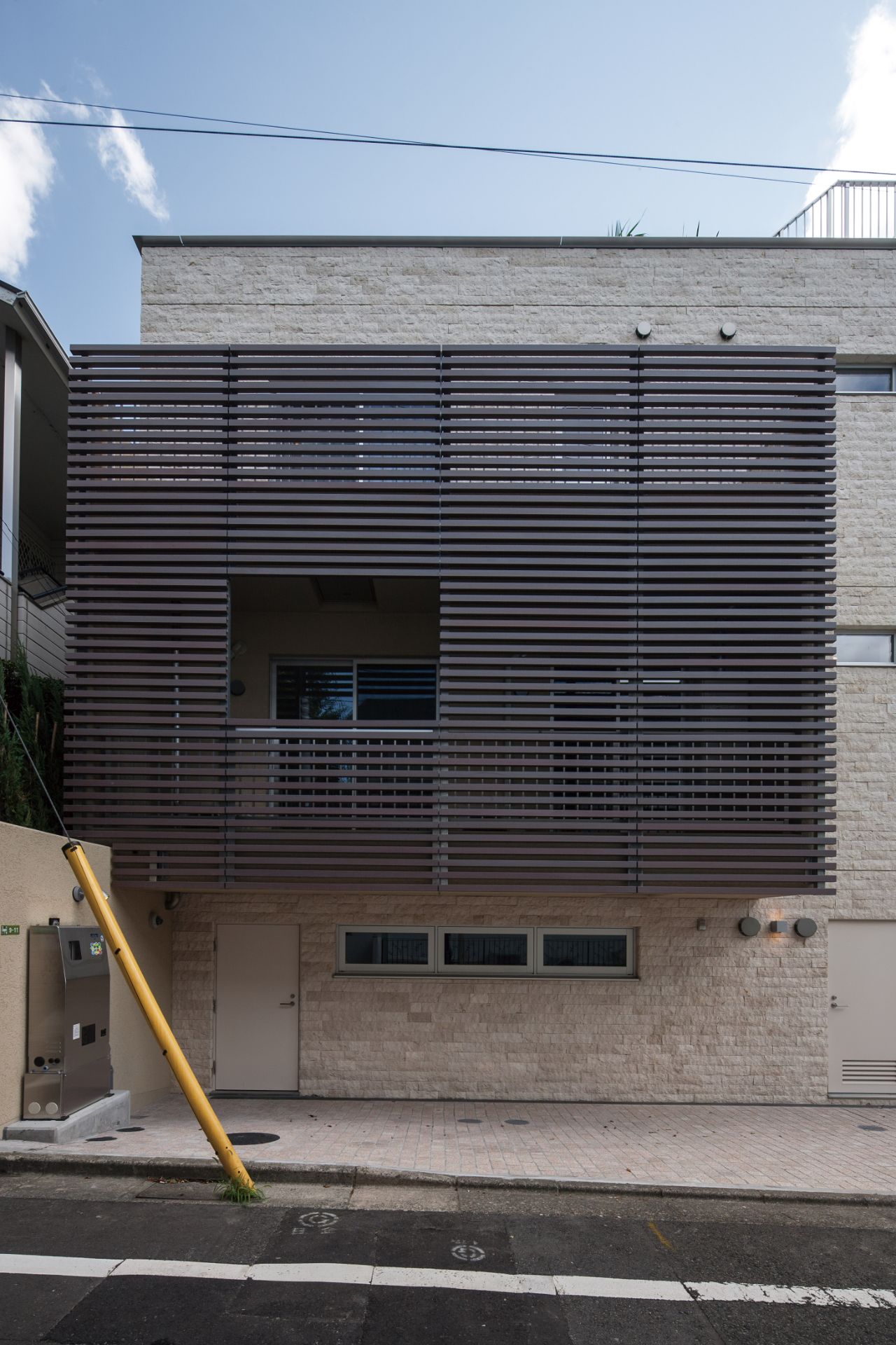 都内でも人気の自由が丘に建つ住居と賃貸スペースを併せ持ち、石張りの曲線が美しい外壁を持つ特長的な地上3階、地下1階の併用住宅。高低差を利用し道路レベル(法規上は地階)に2軒の店舗スペース、1階と2階には5戸の賃貸住戸。3階と屋上はオーナー居住スペース。オープンテラスを備え開放感あふれるハイグレードな設え。賃貸住戸の内部仕上げもグレードの高いものを選び、収益計画まで企画、マネジメントした賃貸併用住宅となりました。