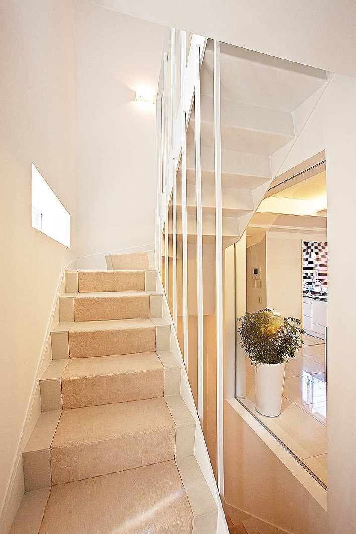 空間に安定感を生む。キッチンからはダイニングを介して、リビングルームまでが見渡せる。