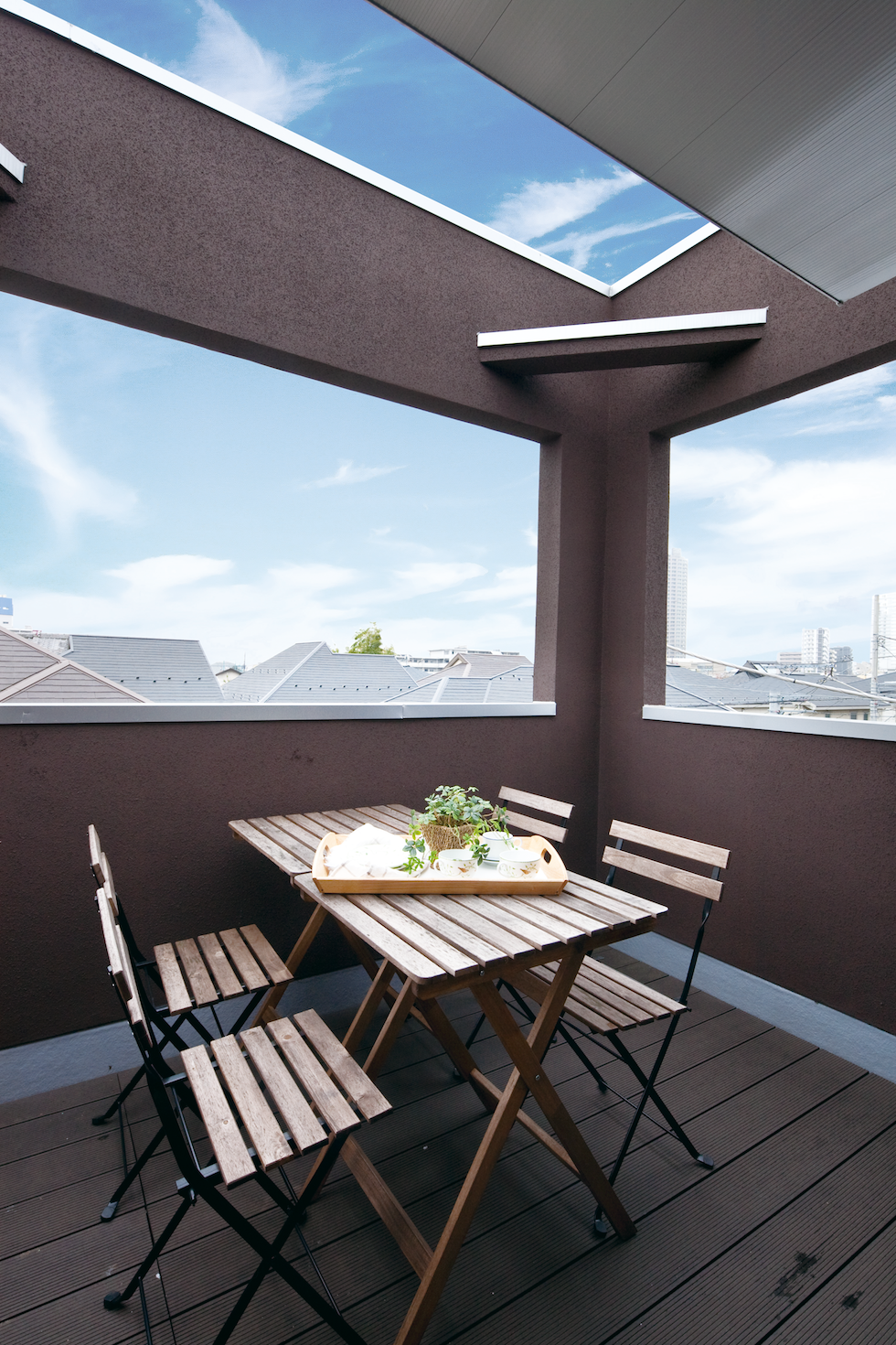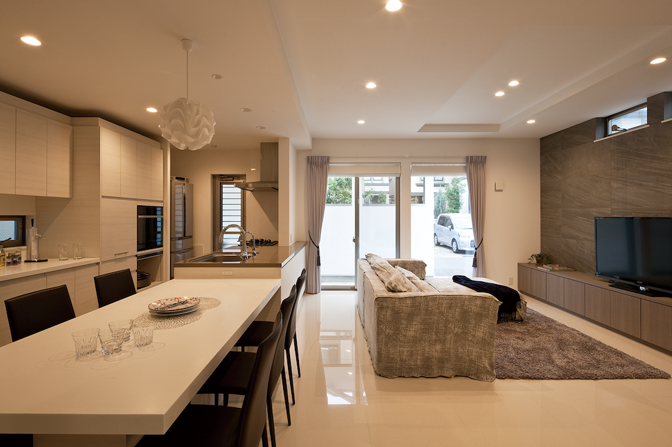 様々な要望と条件の下、最高ランクの耐震等級、造作キッチン、ホームシアターさらにルーフバルコニーまで実現した住まいである。