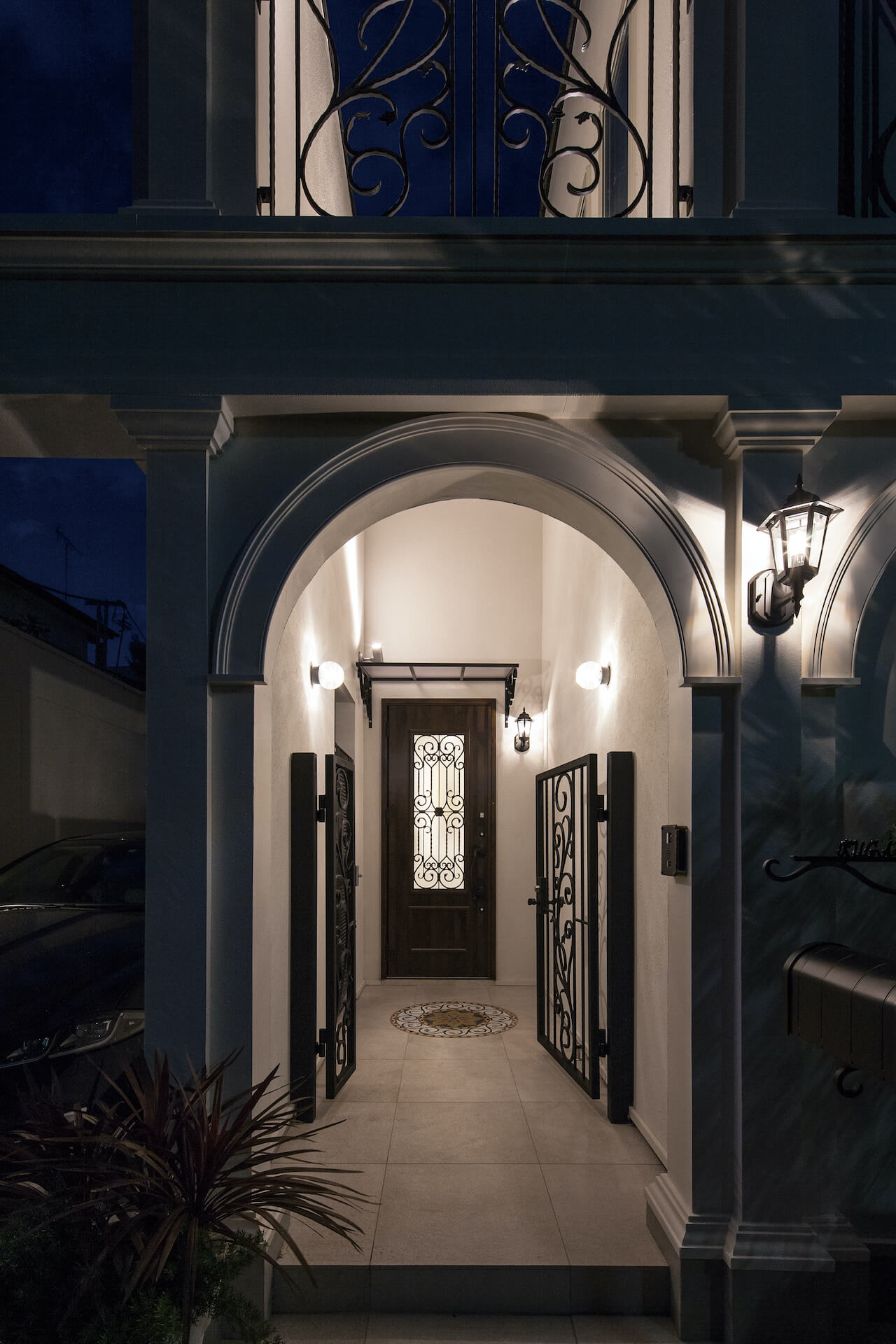 アメリカでの生活が長く、イタリアンモダンのデザインがお好きでアートにも造詣が深いAさん。インテリアの最終形まで一緒に考えながら、空間もディテールも同時進行でつくっていくプロスタイルデザインの家づくりに共感。「コロニアル風の白い家」を建てることにした。数え切れないほどのショールームを一緒に回って選択を重ね、まるでパリ郊外で目にするような瀟洒な佇まいの邸宅を完成させた。。