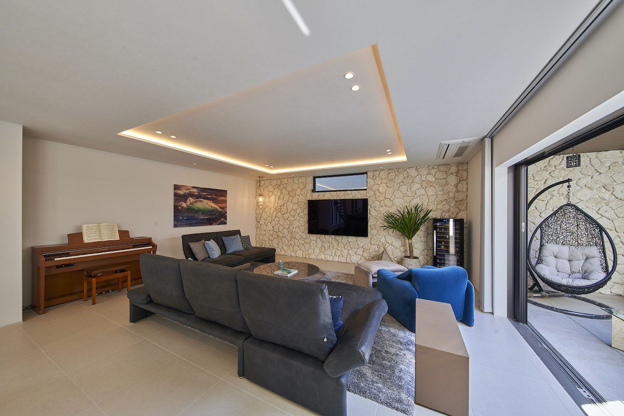 2台駐車可能なビルトインガレージの奥にはトレーニングルーム、